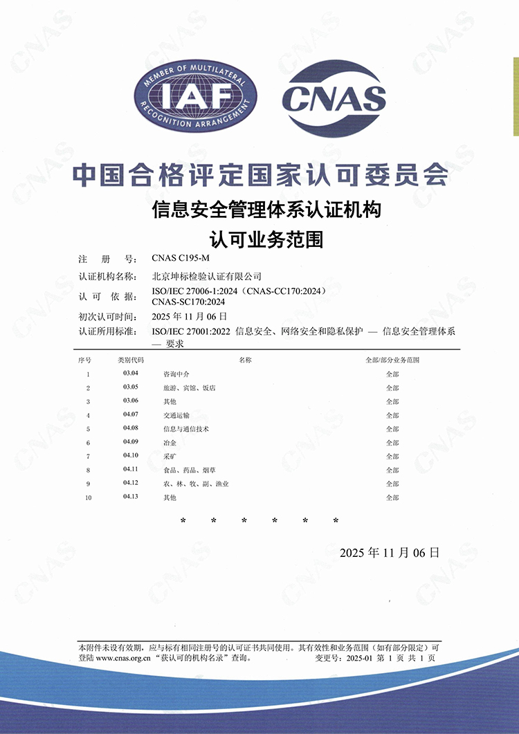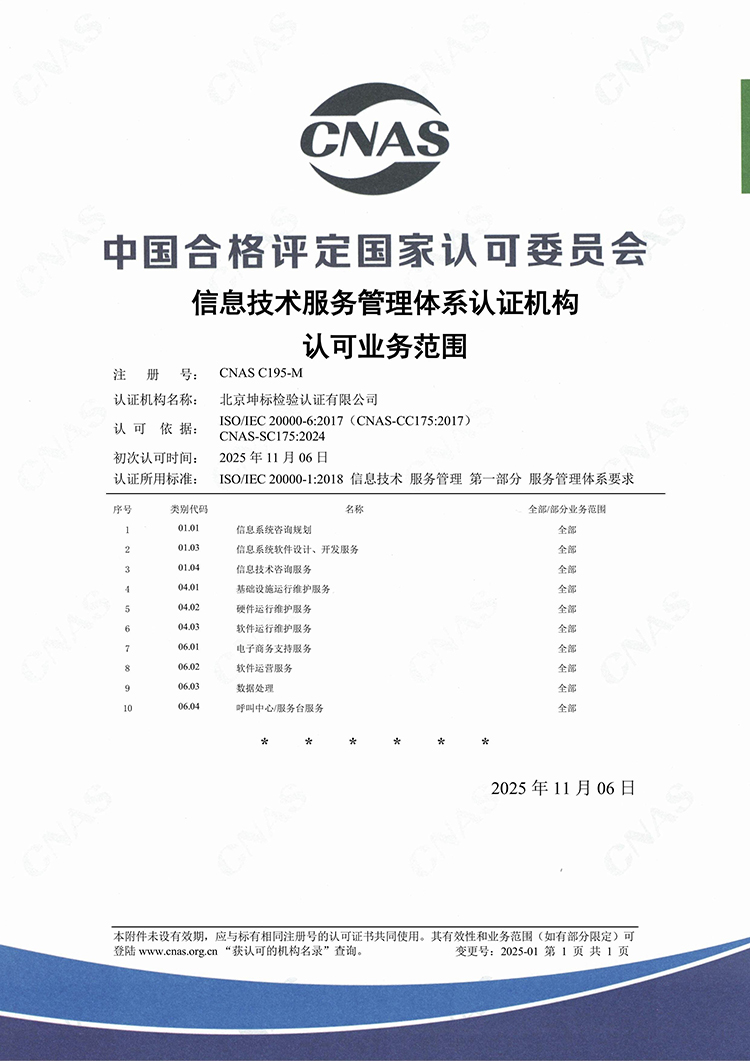 CNAS-C195-M信息技術服務管理體系CNAS-C195-M信息安全管理體系